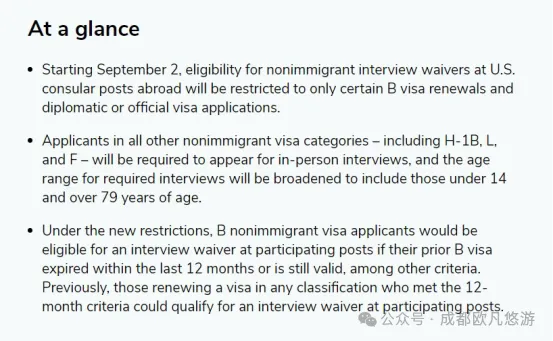 美国国务院于2025年7月25日突然宣布,将大幅收紧非移民签证的面谈豁免政策。自2025年9月2日起,无论是首次申请者还是希望续签的申请人,绝大多数非移民签证申···