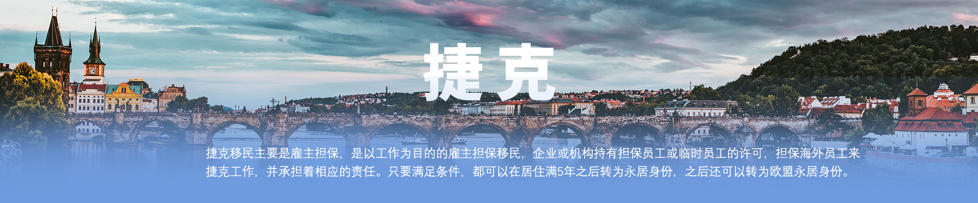 捷克移民主要是雇主担保,是以工作为目的的雇主担保移民,企业或机构持有担保员工或临时员工的许可,担保海外员工来捷克工作,并承担着相应的责任。只要满足条件,都可以在居住满5年之后转为永居身份,之后还可以转为欧盟永居身份。