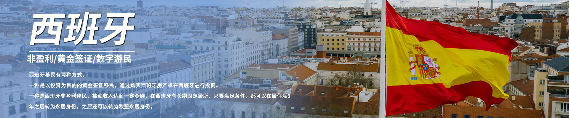 西班牙移民有两种方式,一种是以投资为目的的黄金签证移民,通过购买西班牙房产或在西班牙进行投资。一种是西班牙非盈利移民,被动收入达到一定金额,在西班牙有长期固定居所。只要满足条件,都可以在居住满5年之后转为永居身份,之后还可以转为欧盟永居身份。