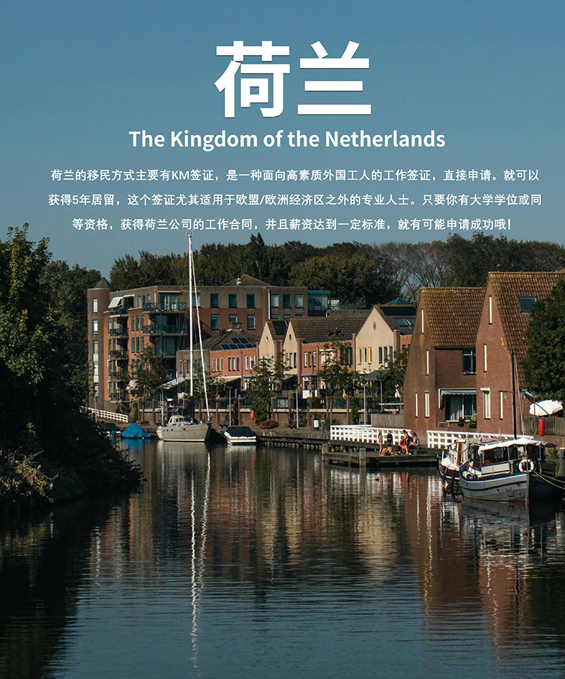 荷兰主要移民方式有两种。一种是以吸引高级人才设立的高级人才签证,一种是以投资为目的的投资移民,申请人需要至少向荷兰的一家初创公司投资125万欧元,或者向荷兰的风险投资基金注资,而该基金会将这些资金投入到多个荷兰初创企业中。只要满足条件,都可以在居住满5年之后转为永居身份,之后还可以选择转为欧盟永居身份