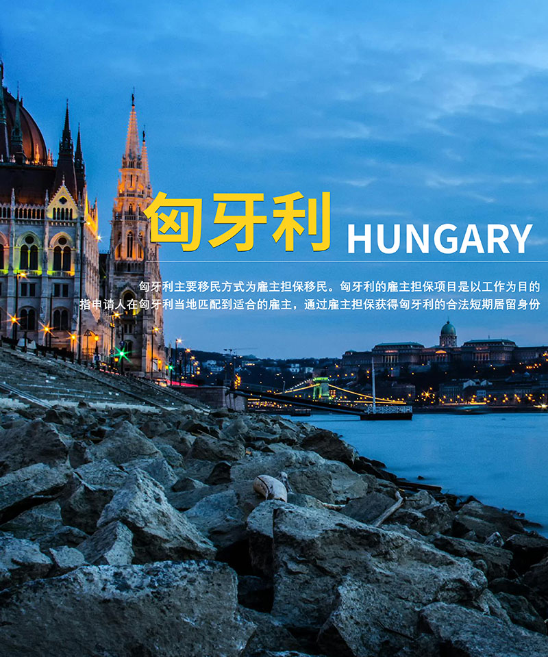 匈牙利主要移民方式为雇主担保移民。匈牙利的雇主担保项目是以工作为目的,指申请人在匈牙利当地匹配到适合的雇主,通过雇主担保获得匈牙利的合法短期居留身份。
