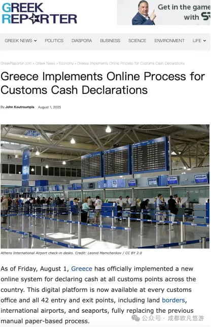 2025年8月1日,希腊全国海关口岸正式告别手写申报时代。在雅典国际机场,首批使用新系统的旅客在海关人员协助下,仅用几分钟就完成了现金申报流程。“新系统比想象中简单,”一位带着两个孩子返回黎巴嫩的女士表示,“以前看到排长队填纸质表格就头疼,现在现场电脑操作,还有工作人员指导。”希腊独立公共收入管理局···